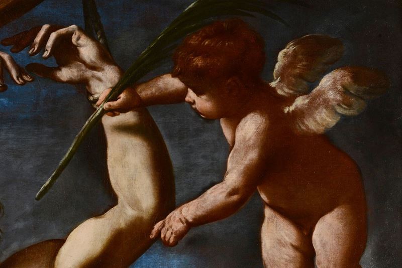 Senz’altro confermabile l’attribuzione di questa prestigiosa tela a Simone Cantarini, già avanzata, correttamente, anni or sono (1996), da Nicosetta Roio trattando un gruppo di dipinti inediti di diversi artisti nella monografia su Giacomo Cavedoni (cfr. Bibliografia).