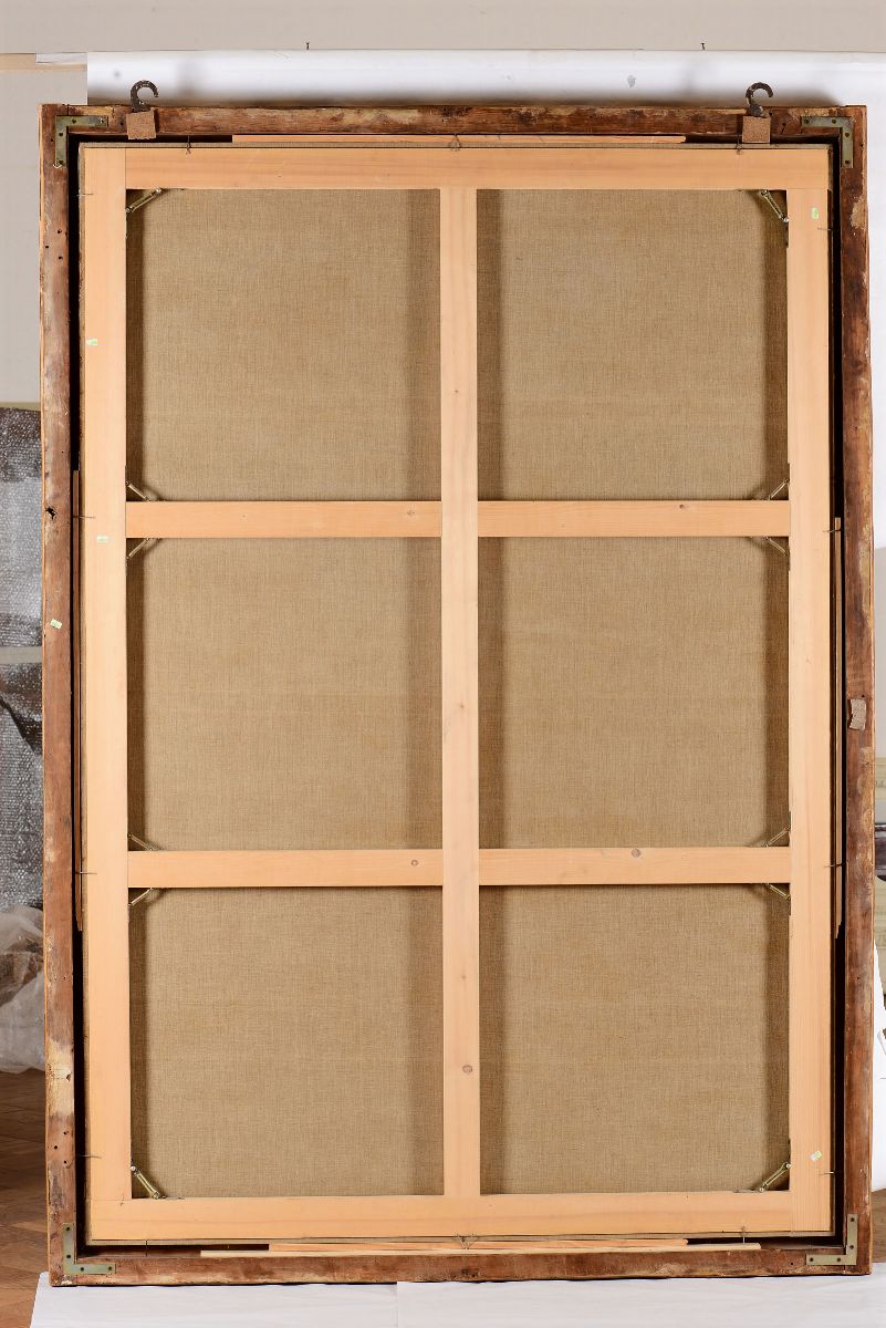 olio su tela, cm 216x149 entro cornice intagliata e dorata