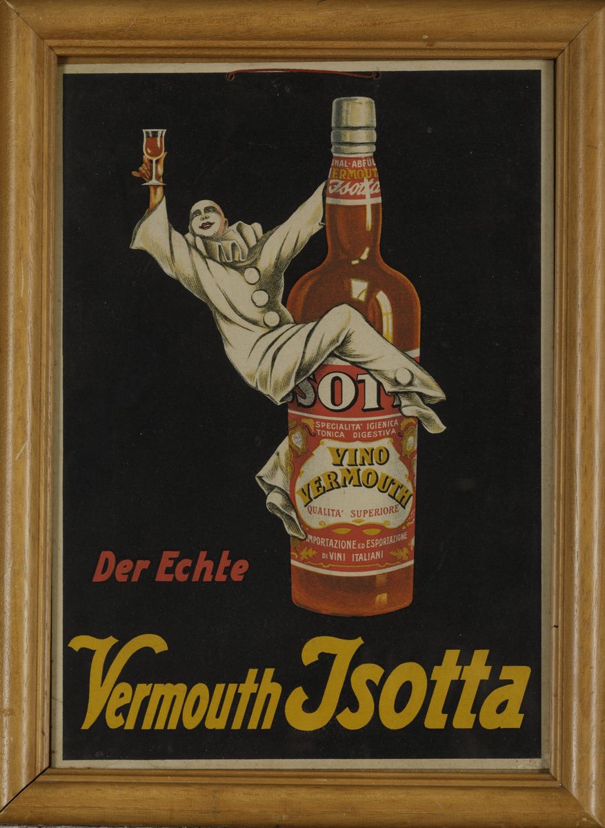 Un delizioso Pierrot a promuovere sul suolo tedesco uno dei numerosi produttori di Vermuth italiani.