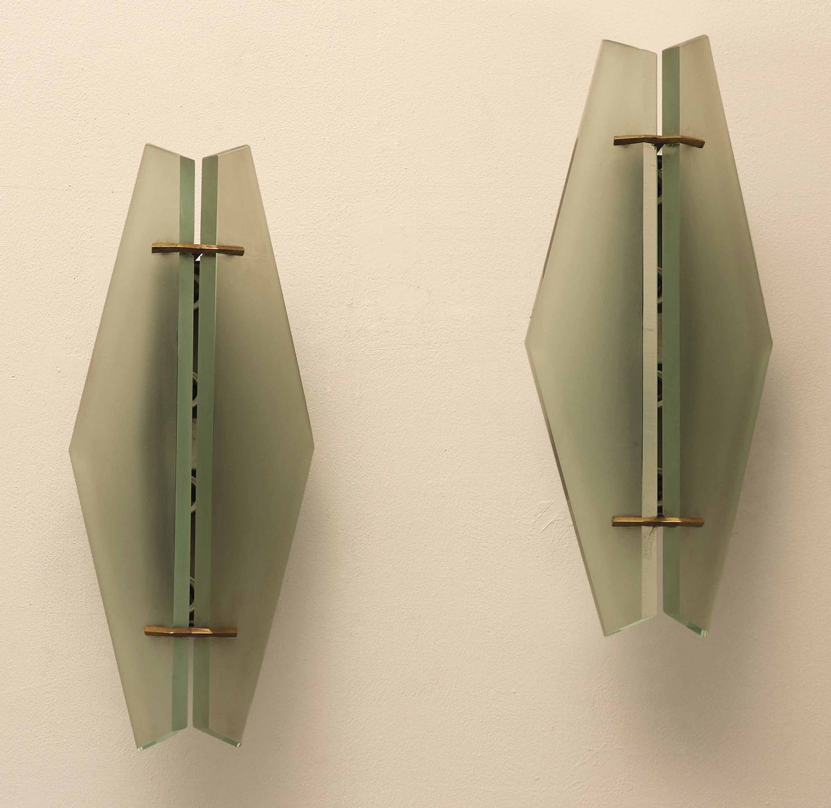 Coppia di lampade da parete mod. 1943 con struttura in metallo e ottone.