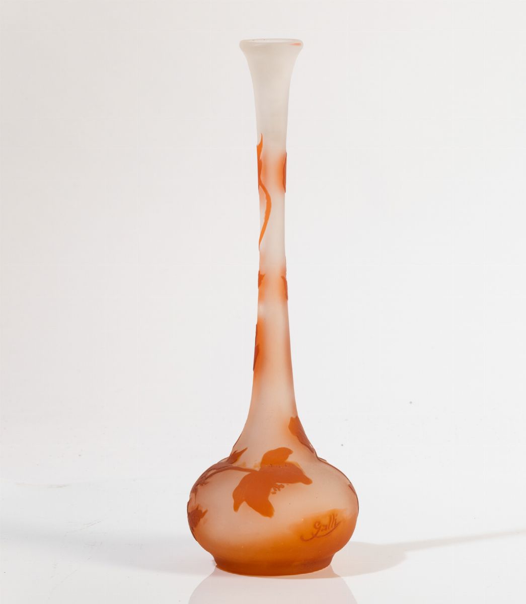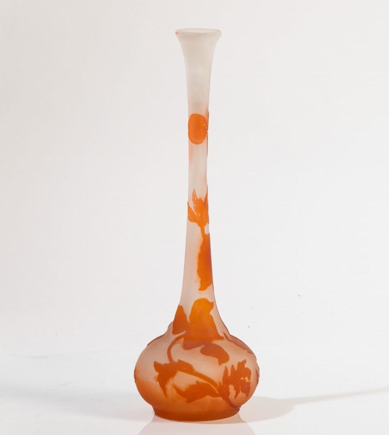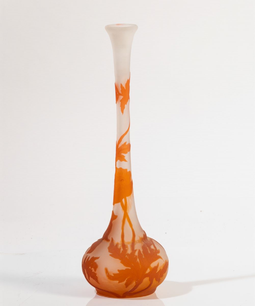 Vaso solifleur in vetro a cammeo con decoro di papaveri.