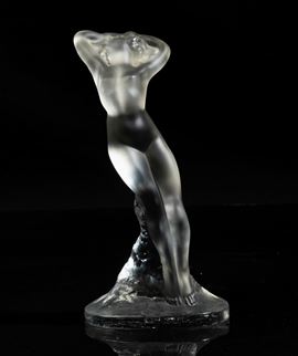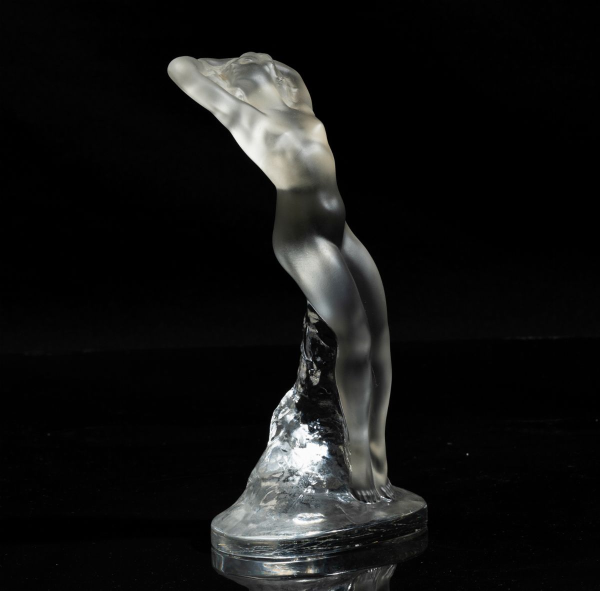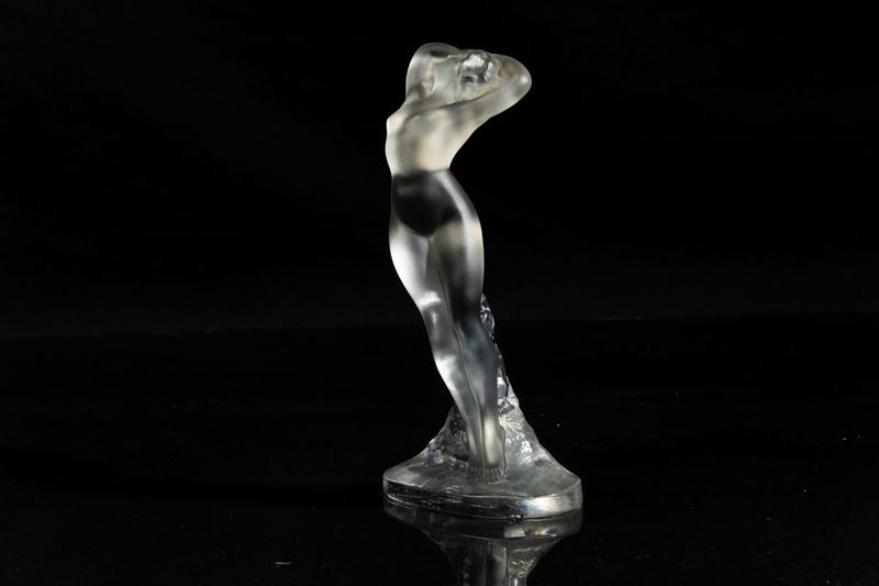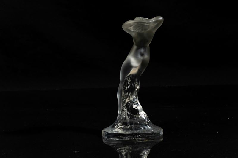 Figura di donna in cristallo sabbiato su basamento ovale.