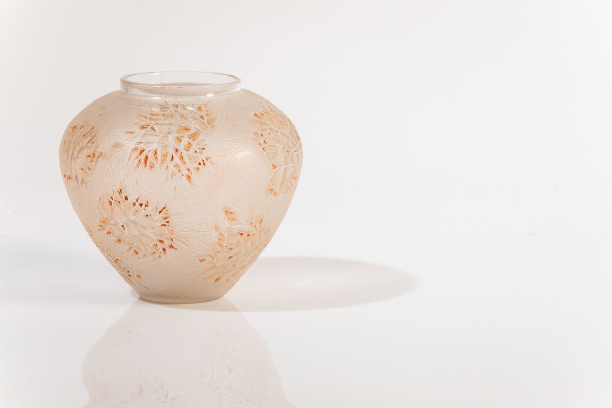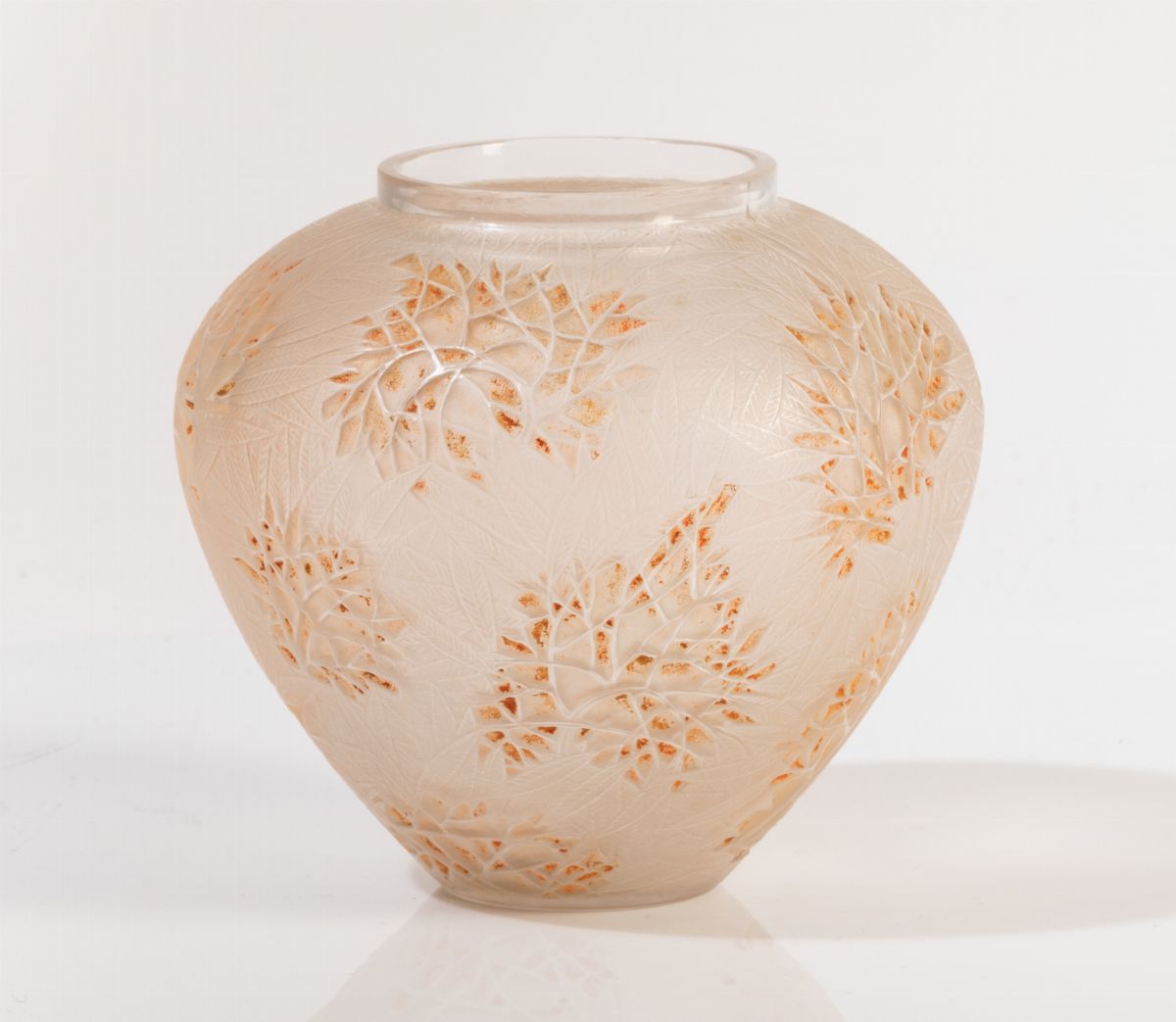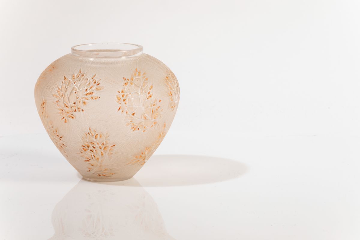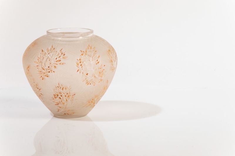 Vaso modello Esterel in cristallo soffiato a stampo con decoro di rami di foglie.