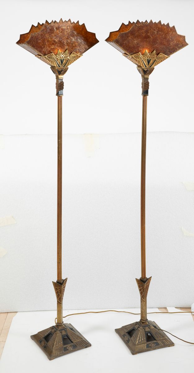 Coppie di lampade Liberty in metallo con diffusori in carta dipinta