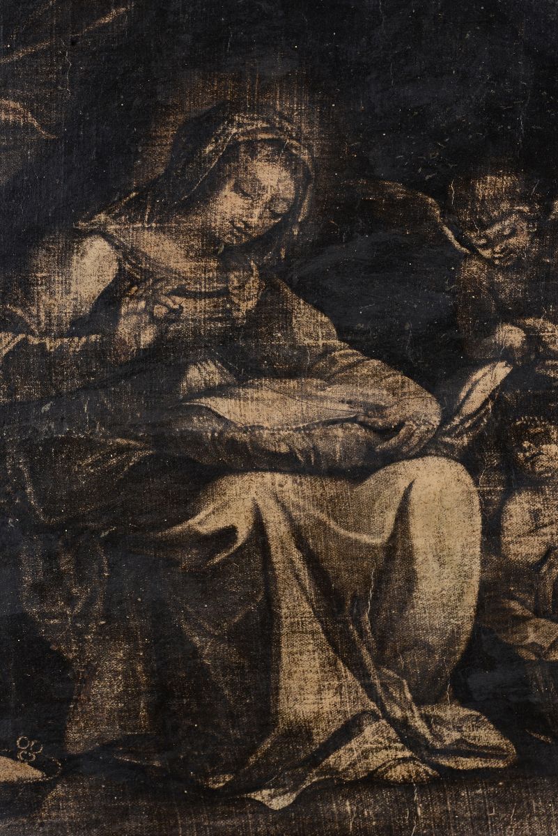 Antica stampa in cornice raffigurante Madonna col Bambino e San Giovannino