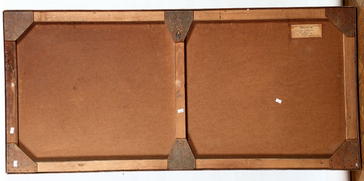 olio su faesite, cm 60x130, firmato e datato in basso a destra
