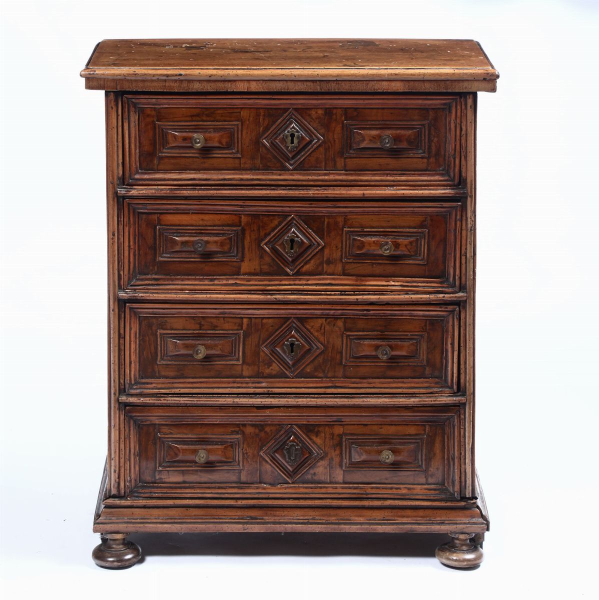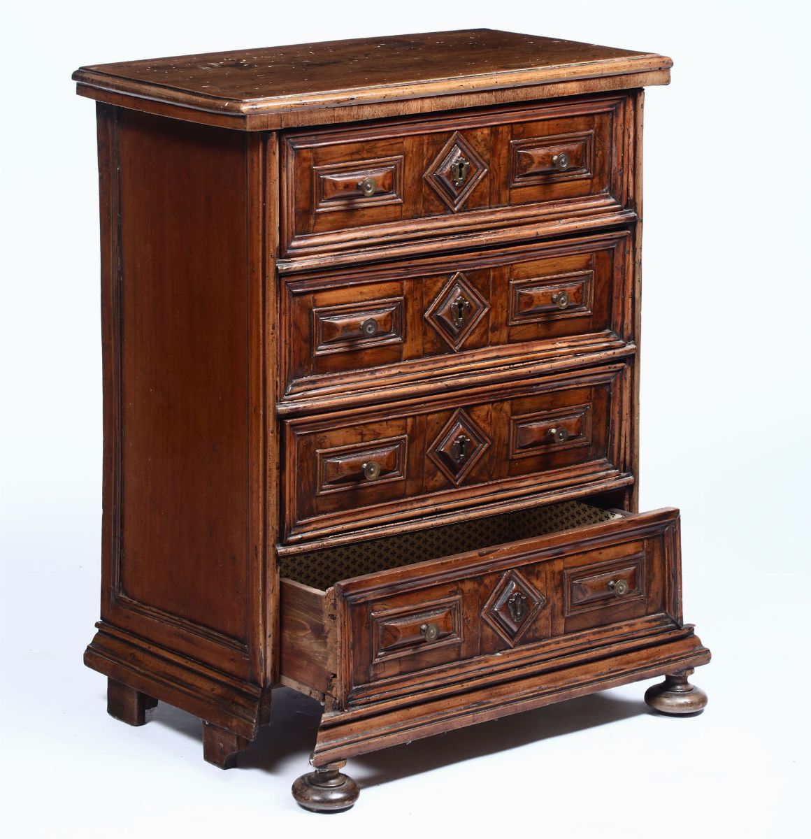 Comodino in legno a quattro cassetti, XVIII secolo