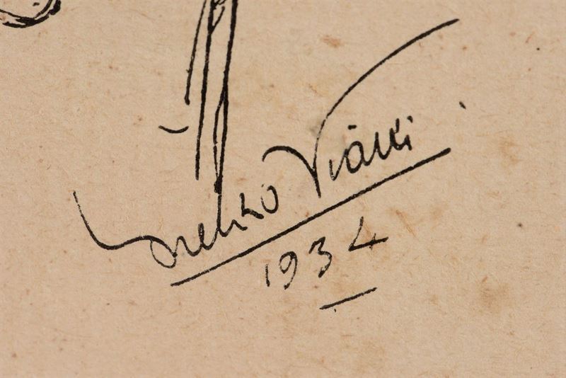 disegno a penna su carta 1934, cm 11x13, firmato e datato in basso a destra