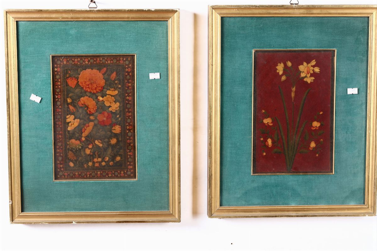 Lotto di sei piccoli dipinti con fiori