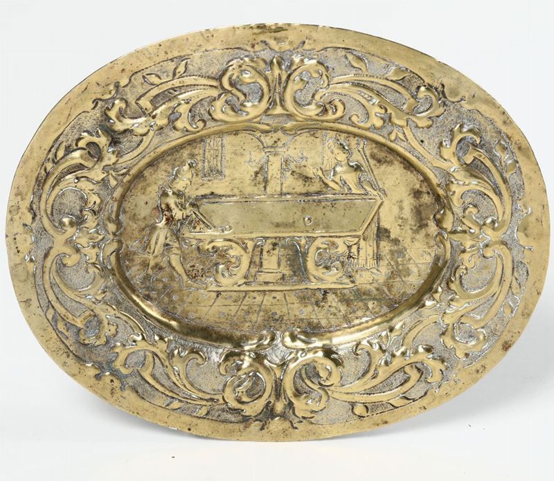 Piatto fiammingo in ottone, XVII secolo