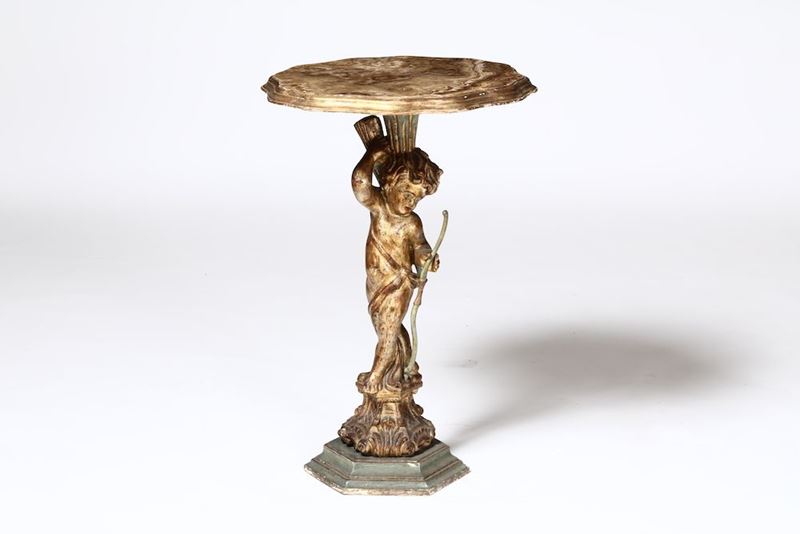 Tavolino in legno dorato con fusto a foggia di putto, XIX secolo