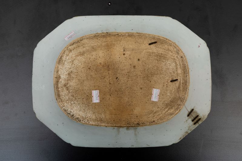 Piatto ottagonale in porcellana a smalti policromi con decoro floreale, Cina, Dinastia Qing, epoca Qianlong (1736-1796)
