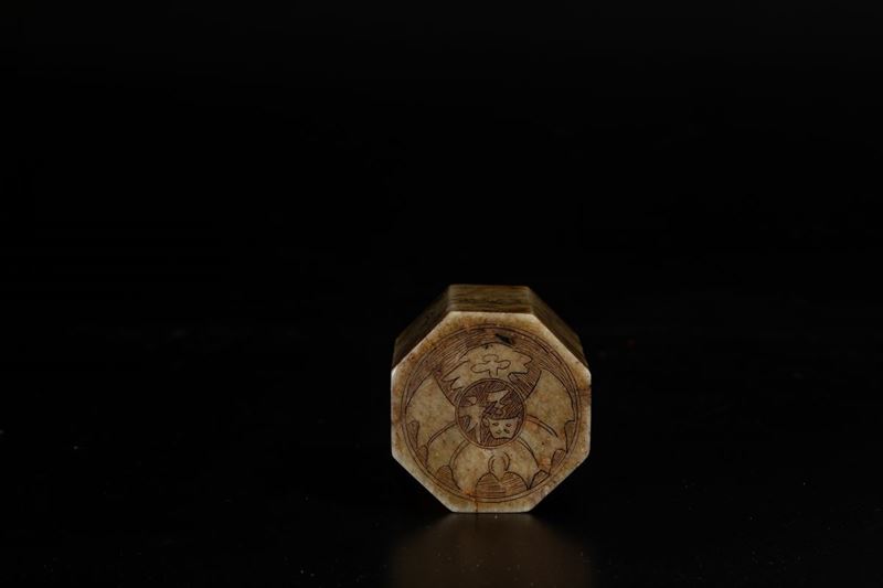 Sigillo in saponaria con raffigurazione di paesaggio e iscrizioni, Cina, XIX secolo