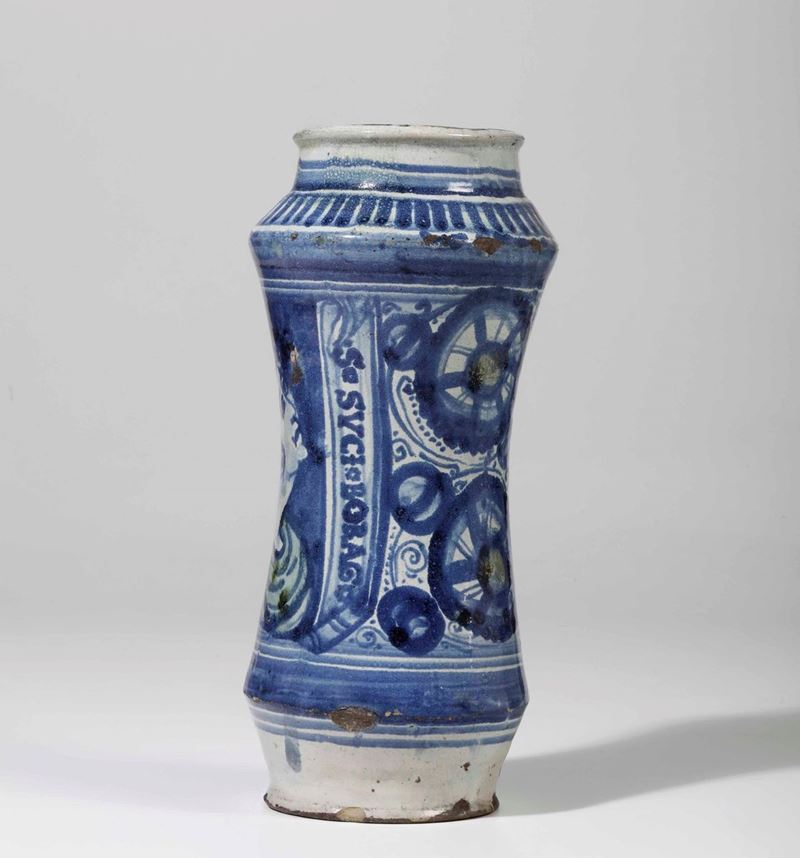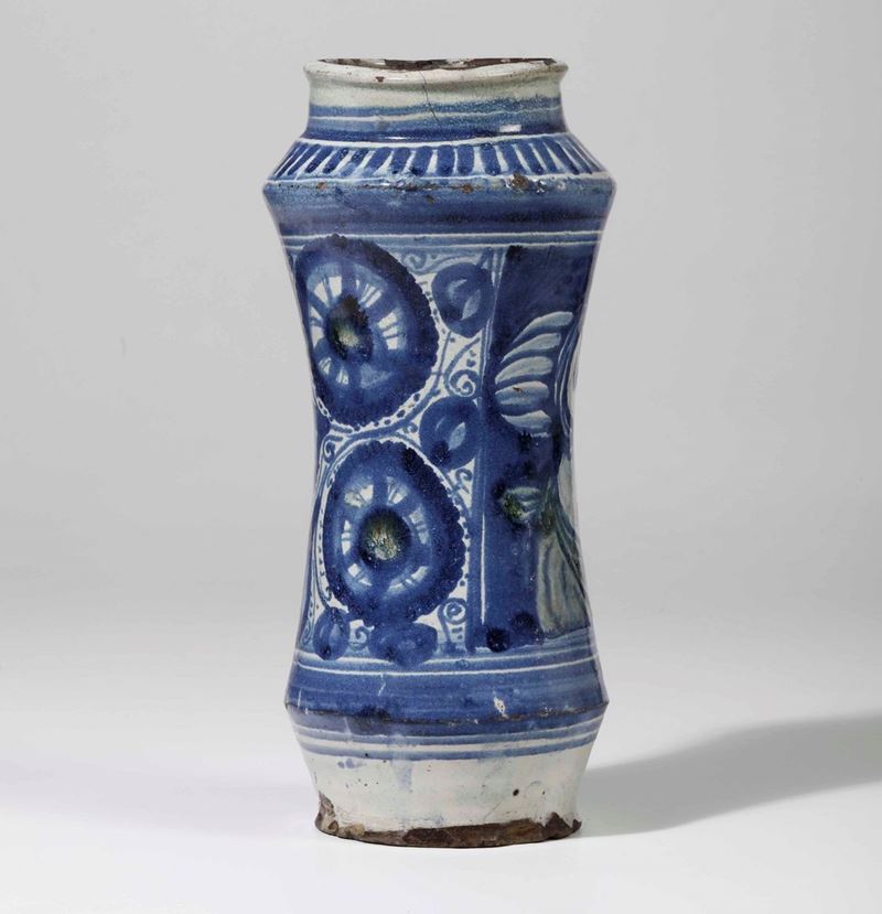 Maiolica. Altezza cm 35 circa. Conservazione: ottimo stato; qualche insignificante sbeccatura