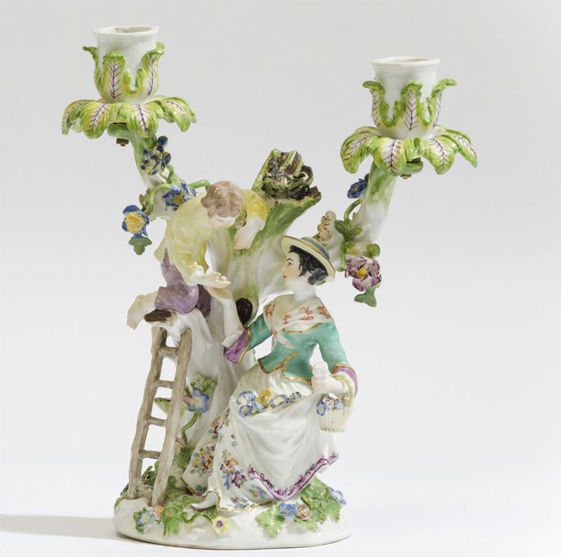 Candelabro da tavola “Il ladro di uova” Meissen, metà del XVIII secolo Modello di J.J.Kaendler, 1748