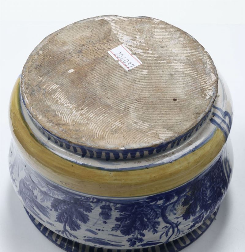 Maiolica. Altezza cm 9; diam. cm 14,5 circa.