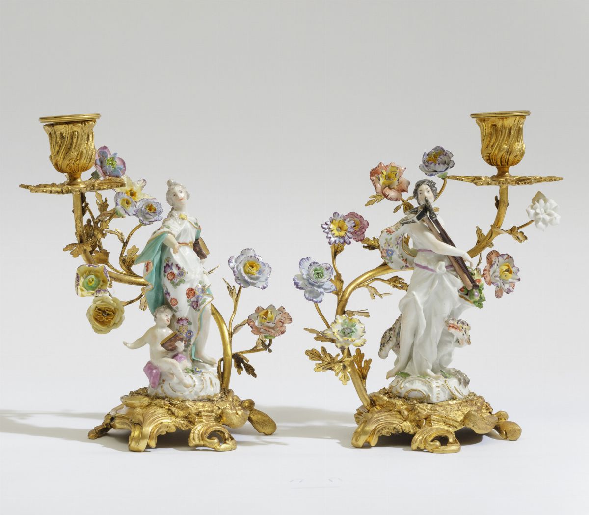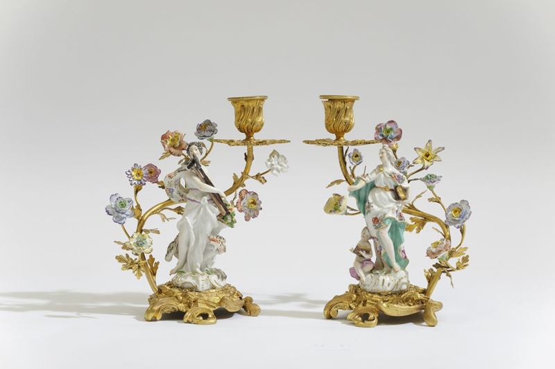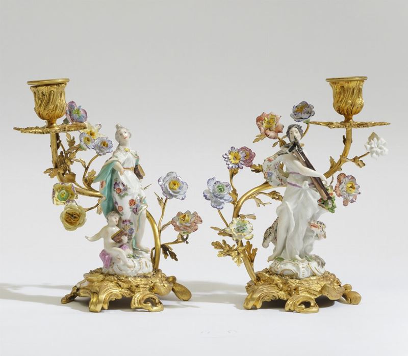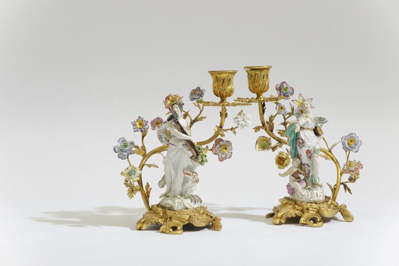 Coppia di candelabri da tavola Meissen, 1760 circa (figurine)