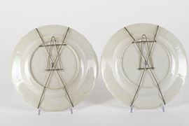 Al Kirschgarten-Museum di Basilea, è conservato un piatto proveniente dallo stesso servizio dei nostri, decorato pure con un paesaggio fluviale e una coppia di nobili, il cui cavaliere si appoggia ad una lapide commemorativa su cui si trova la data 1751 e il monogramma AR.