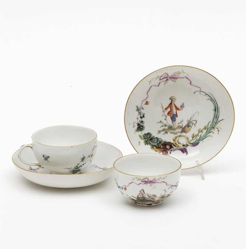 Coppia di tazze con piattino Meissen, 1763-1774