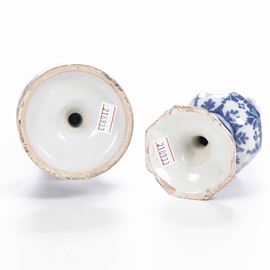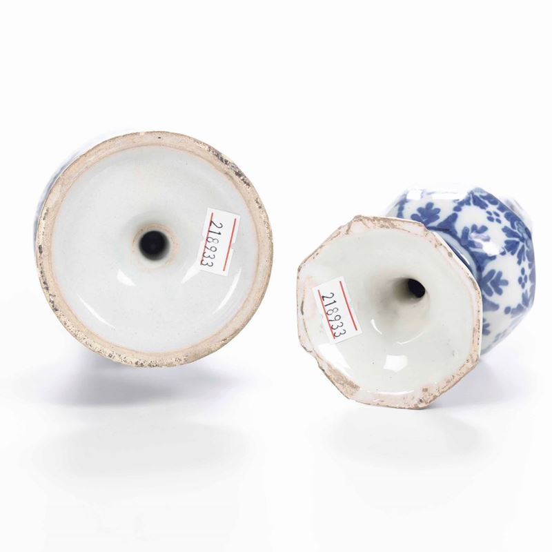Maiolica. Dimensioni: altezza cm 21,2 e 14,8. Conservazione: minime sbeccature ai bordi
