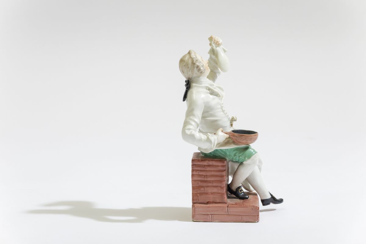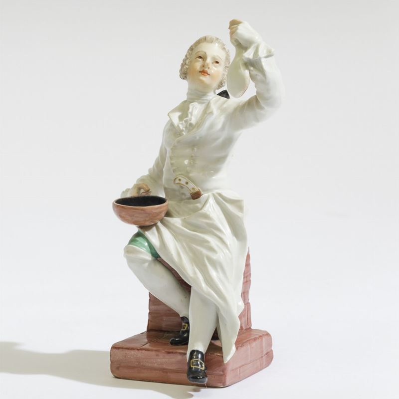 Questa figurina raffigura un cuoco di strada ed appartiene, o è ispirata, alla famosa serie dei “Cris de Paris” o dei “Cris di Londra” che i modellatori di Meissen crearono nel 1747. Il cuoco siede sul suo forno di mattoni, evidentemente spento, e tiene con la mano destra una padella e con la destra qualcosa di indecifrabile, probabilmente della carne