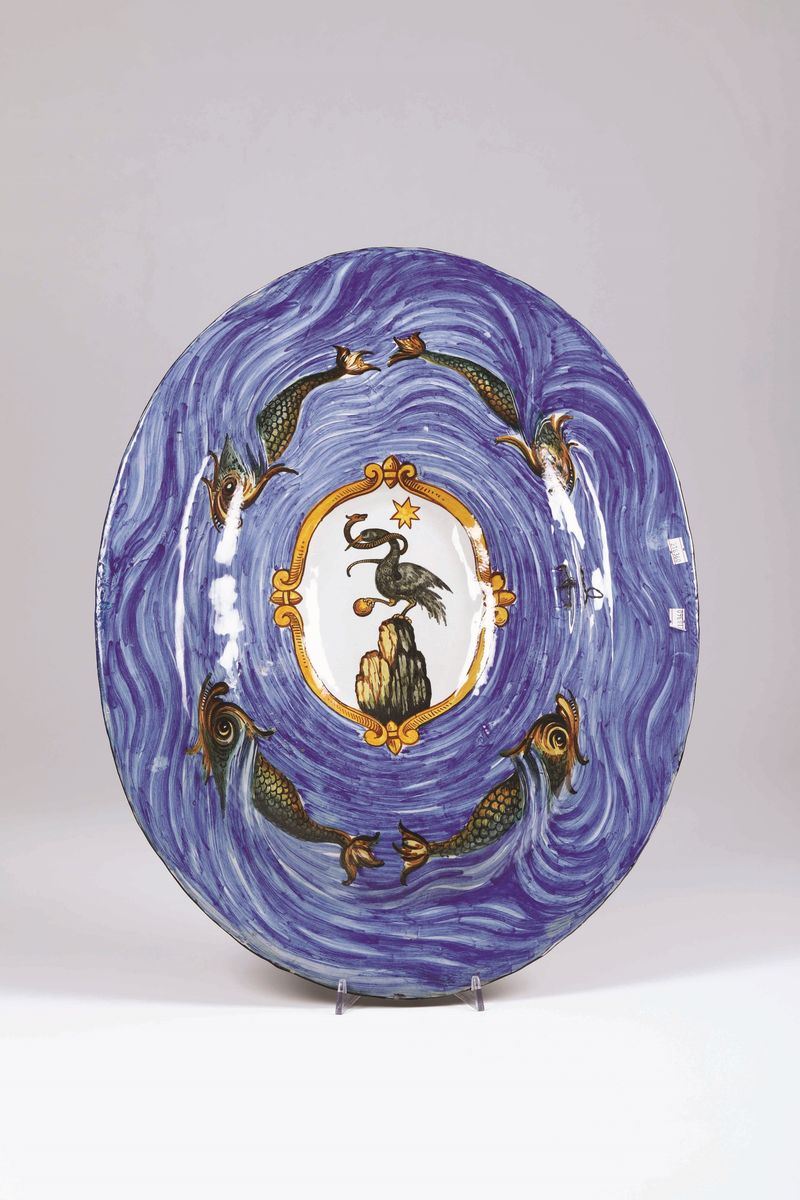 Maiolica. Marca: assente. Dimensioni: cm 61,3 x 48 Conservazione: qualche insignificante sbeccatura al bordo