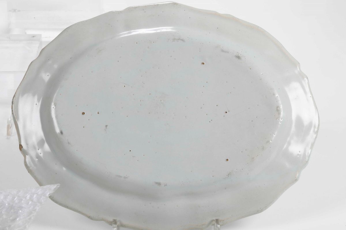 Maiolica a piccolo fuoco. Marca: assente. Dimensioni: diametro cm 21,5 e 24,2; ovale cm 26,5 x 33,5