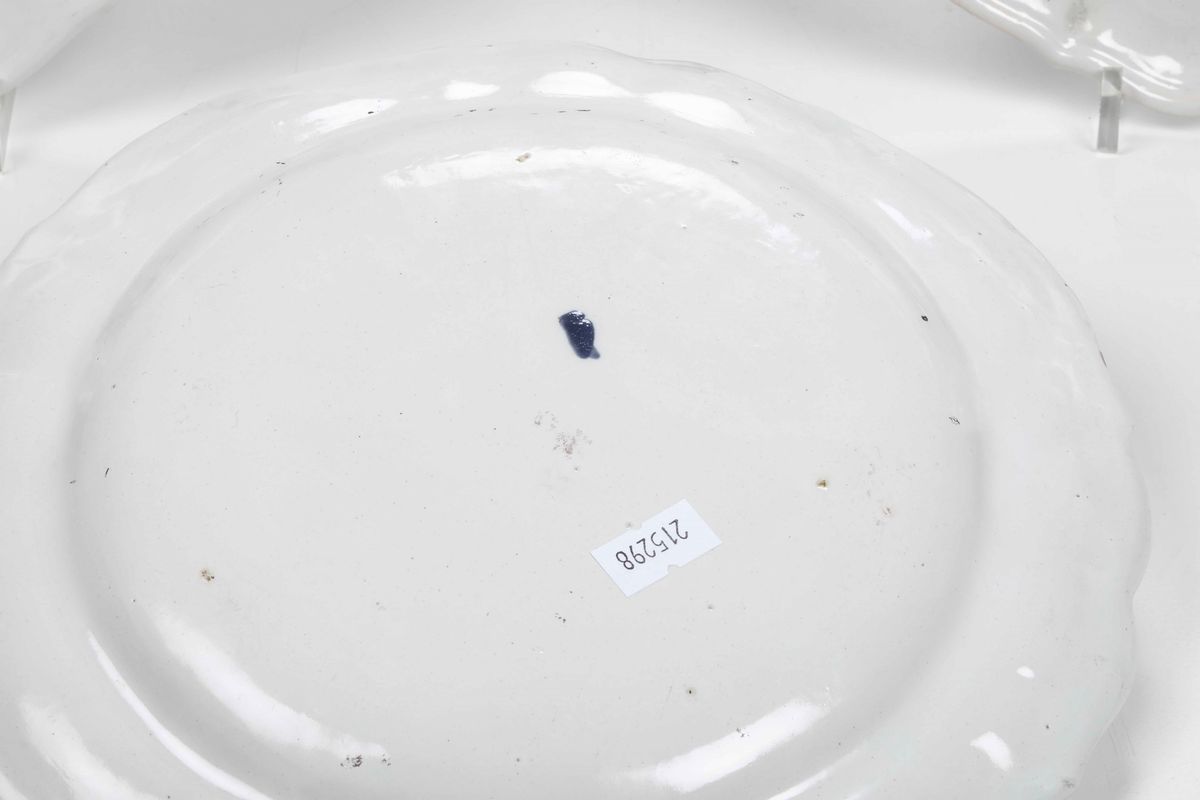 Quattro piatti Milano, Manifattura di Pasquale Rubati, 1770 circa Maiolica. Marca: trattino detto chiodo in blu e in verde. [..]