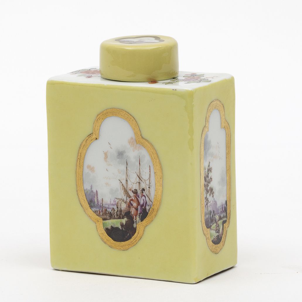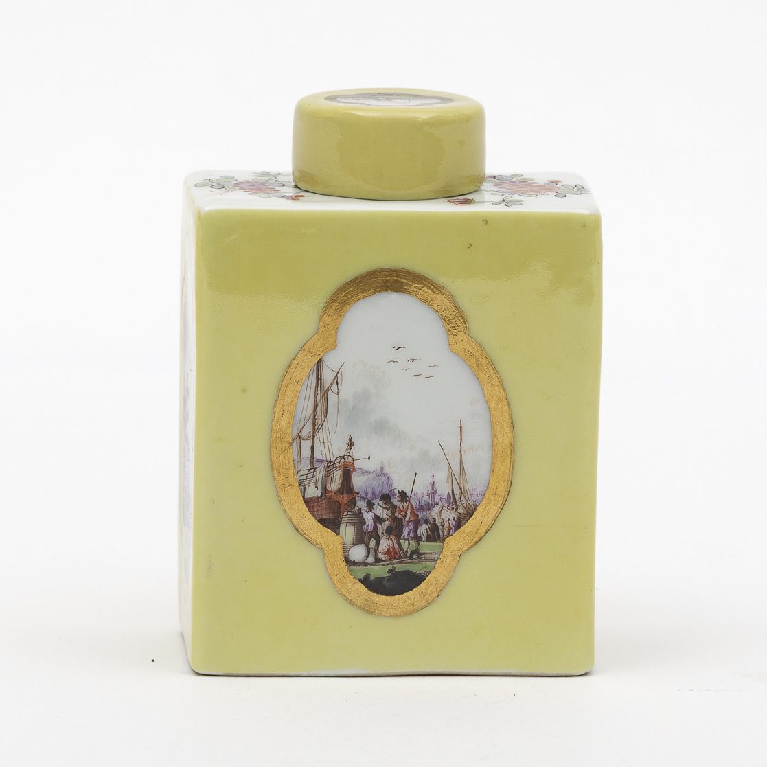 Porcellana. Marca: assente; croce con 4 puntini incisi per il modellatore Schiefer. Altezza cm 9,6. Conservazione: buona; coperchio moderno