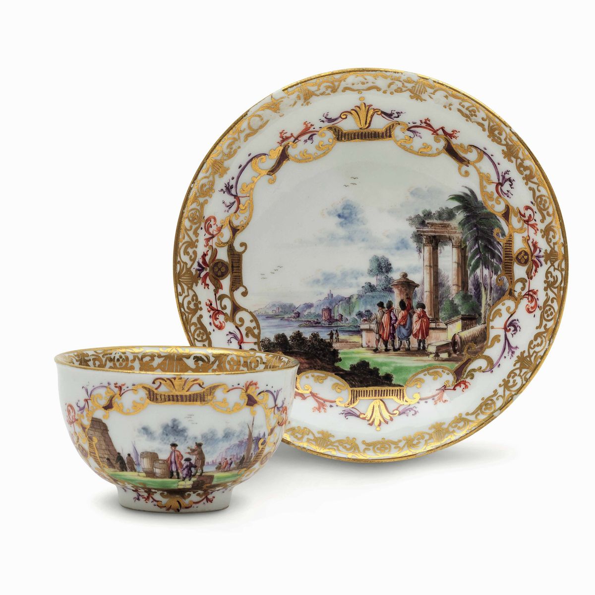 Tazza con piattino Meissen, 1728-1730 Pittura di Christian Friedrich Herold (1700-1779)