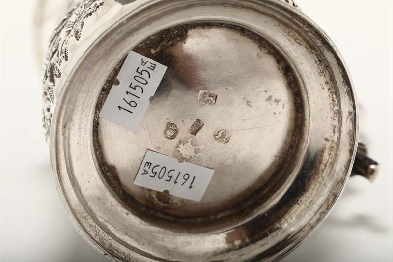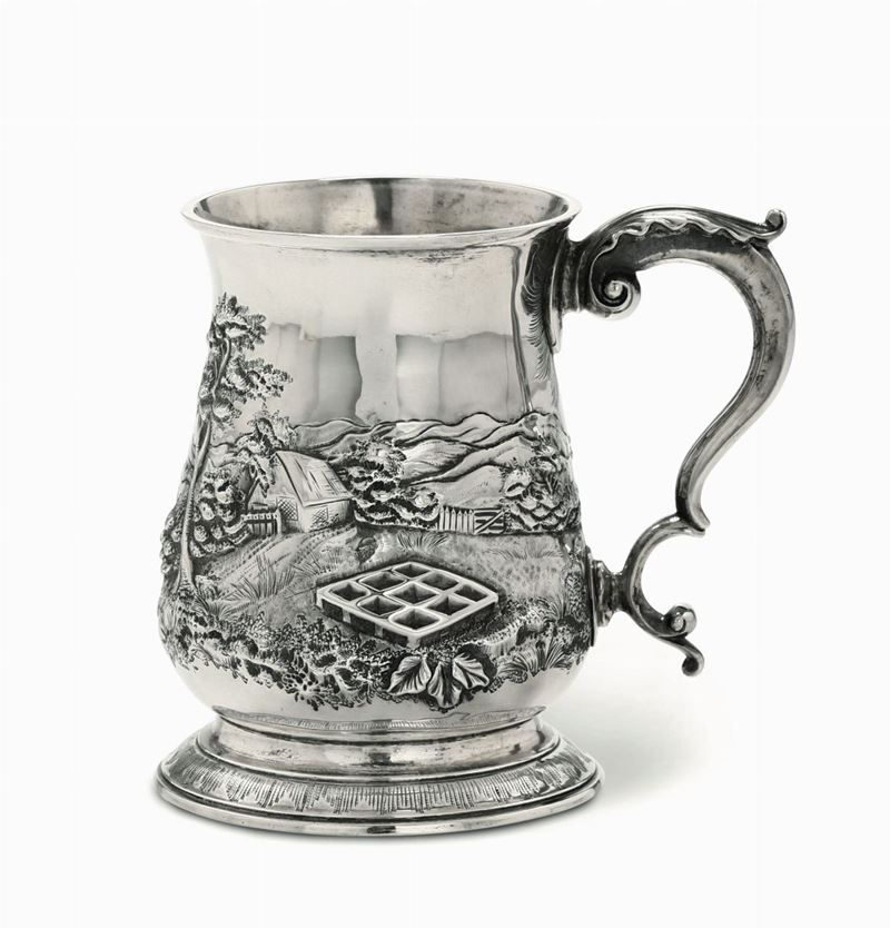 Boccale in argento Sterling sbalzato e cesellato, Londra, 1768, argentiere Wm.Tuite (?)