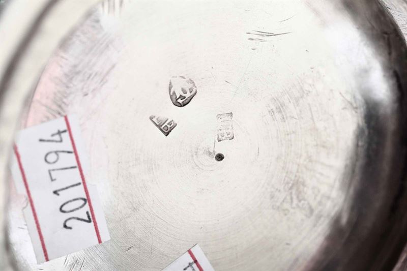 Caffettiera in argento fuso, cesellato e inciso. Firenze 1755-1760, argentiere LB, saggiatore Andrea Cambi