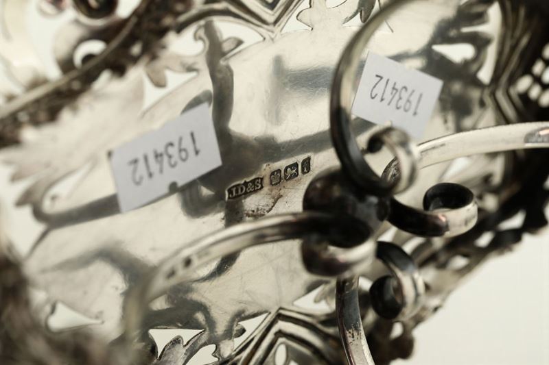 Centrotavola in argento fuso, sbalzato e traforato, città di Sheffield 1829