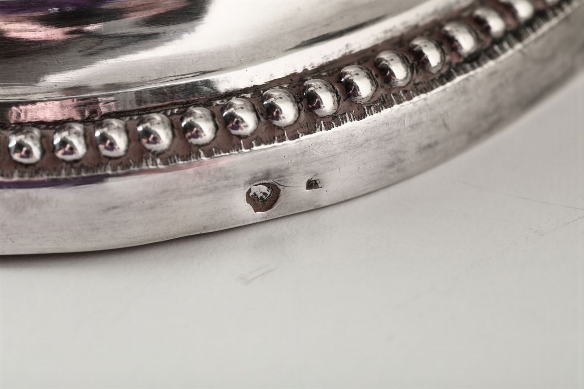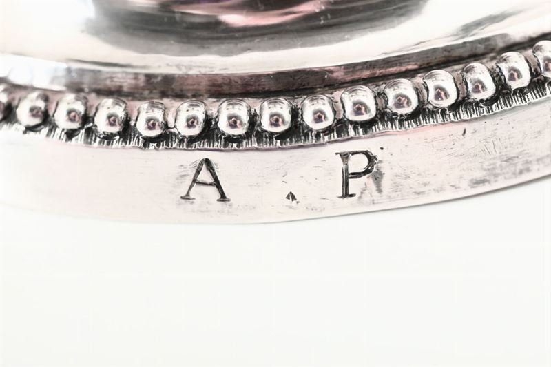 Raro ed elegante modello di gusto neoclassico che trova riscontro palmare con una identica coppia datata 1796 (Fig.1) conservata in collezione privata di Alassio, pubblicata a pag. 196 tav. 30 su “L’argenteria genovese del settecentoâ€, F.Broggero, F.Simonetti, ed. Umberto Allemandi, Torino 2007