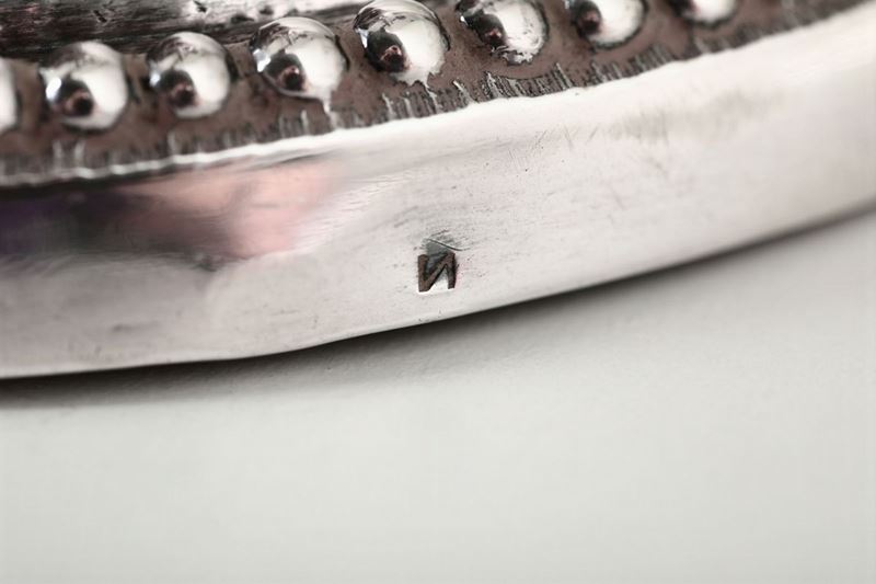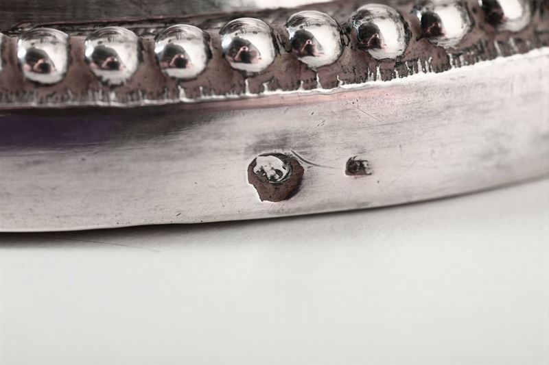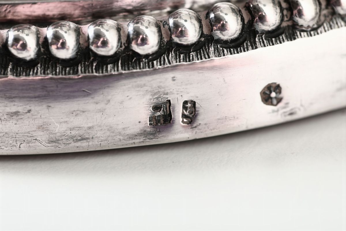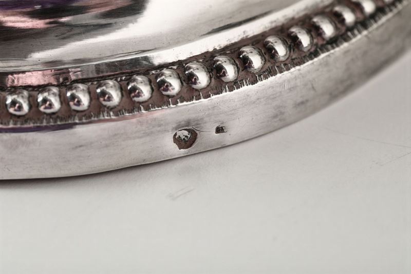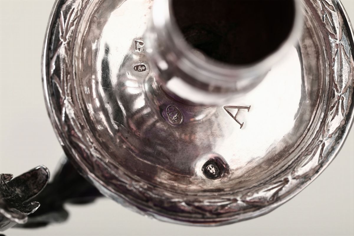 Coppia di doppieri in argento fuso, sbalzato e cesellato. Genova, bollo della Torretta per il 1797, bollo dell’argentiere (non identificato) e bolli di ricontrollo dell’occupazione francese