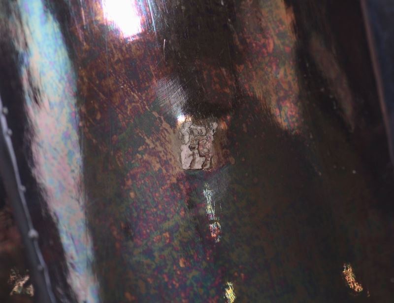 Ricchi decori a volute, riserve e pellacce. Anse a foggia di foglia.