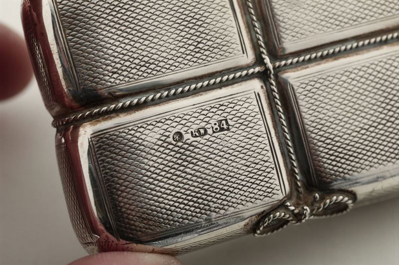 Tabacchiera bollo di titolo e della città di San Pietroburgo. Portasigarette Italia inizi XX secolo (ante 1934).