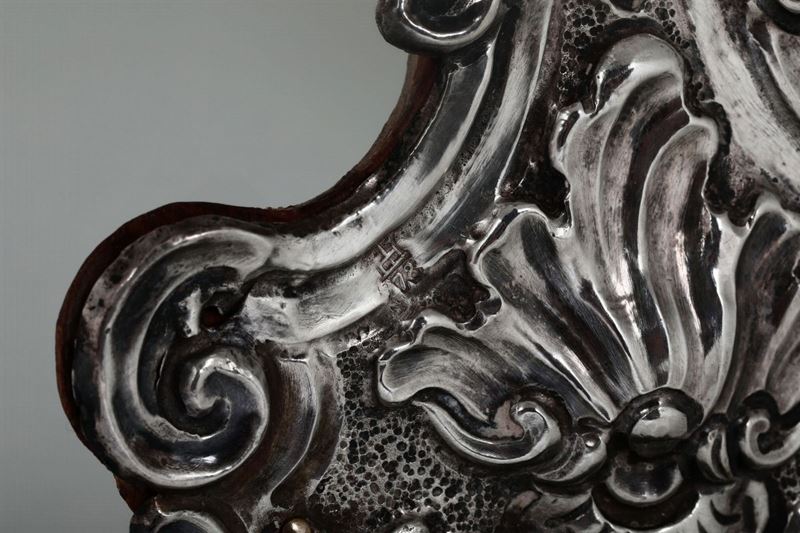 Reliquiario in lamina d’argento sbalzata e cesellata; legno, Genova, bollo della Torretta per l’anno 1778.
