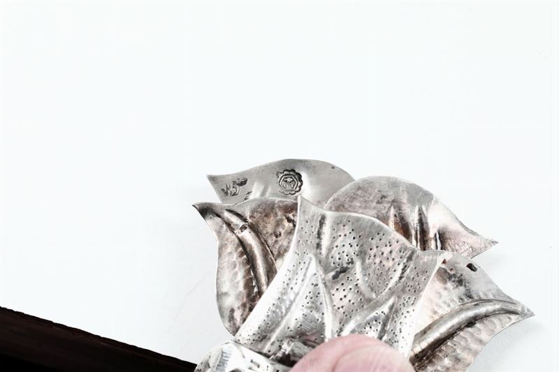 Crostaceo in argento fuso, sbalzato e cesellato. Manifattura artistica spagnola del XX secolo.