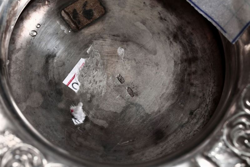 Grande vaso in argento fuso e cesellato. Argenteria artistica italiana del XX secolo. Argentiere Cesa, Alessandria