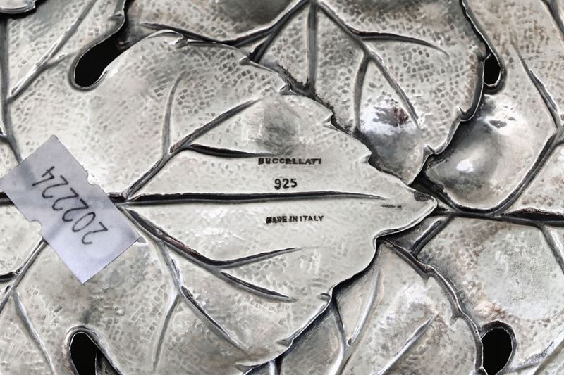 Piatto ovale con decoro a foglie in argento primo titolo a firma Buccellati, Italia XX secolo