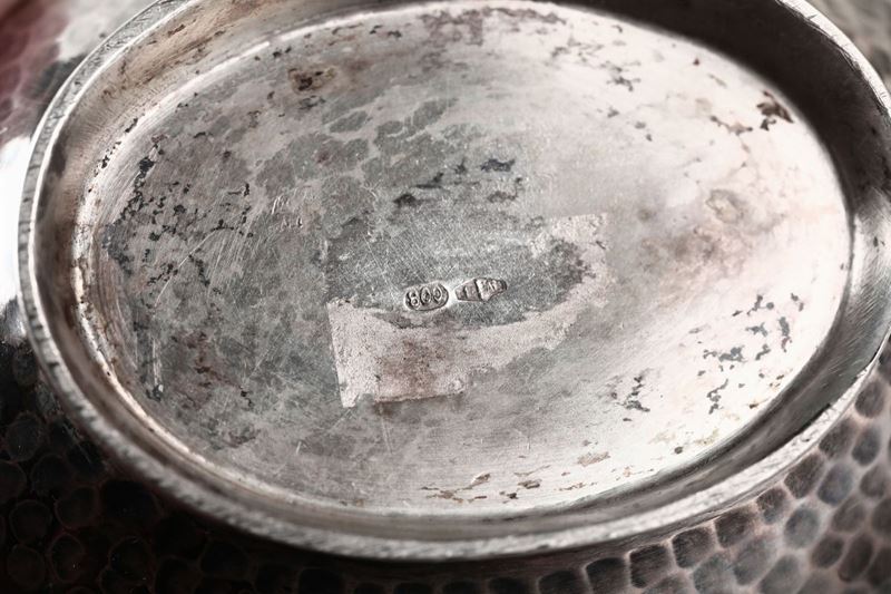 Servizio in argento fuso, sbalzato e legno. Bolli di titolo con fascio littorio in uso dal 1935 al 1945. Argentiere Cesa, [..]