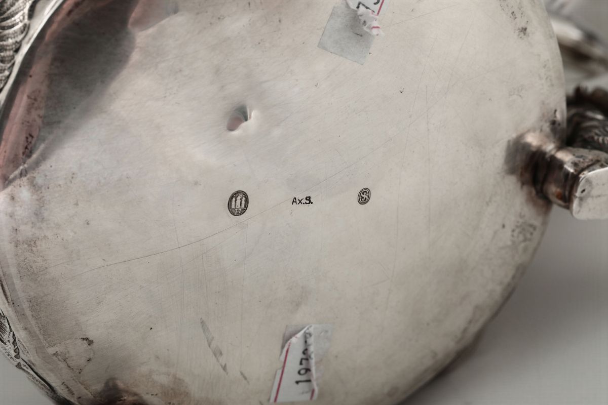 Tankard in argento fuso, sbalzato e cesellato. Copenaghen inizi del XX secolo