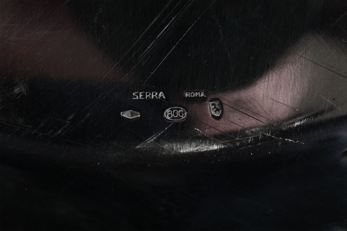Vassoio circolare in argento fuso e cesellato. Manifattura artistica italiana del XX secolo. Argentiere S.AN. Milano per Serra Roma