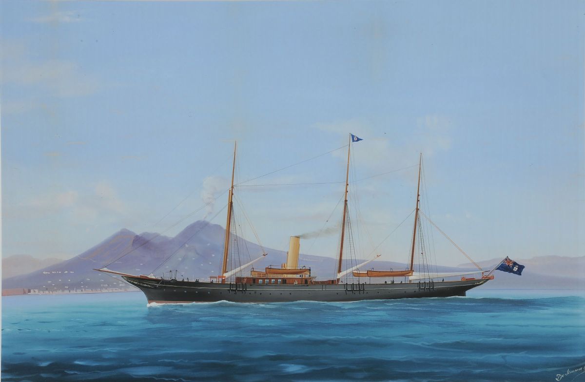 Antonio De Simone (1851-1907) Ritratto di Steam Yacht a tre alberi Miranda nella baia di Napoli Ritratto di Steam Yacht [..]