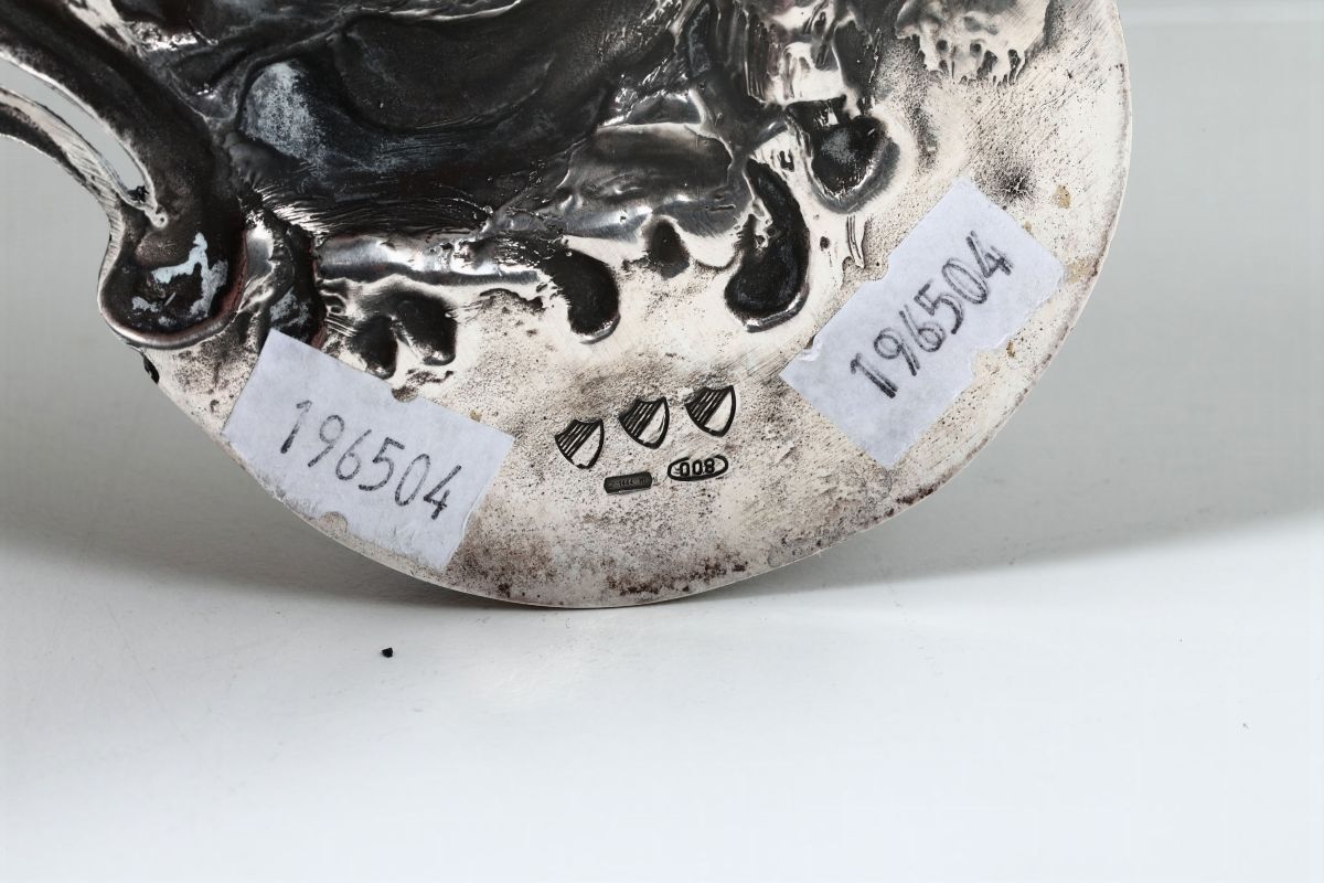 Acquasantiera in argento con raffigurazione di Madonna con Bambino e testa di cherubino. Manifattura italiana del XX seco [..]