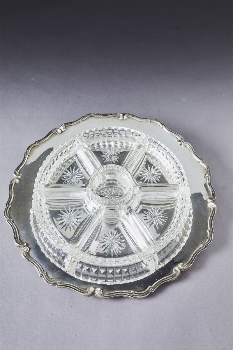 Antipastiera in argento e vetro molato. Argenteria italiana del XX secolo