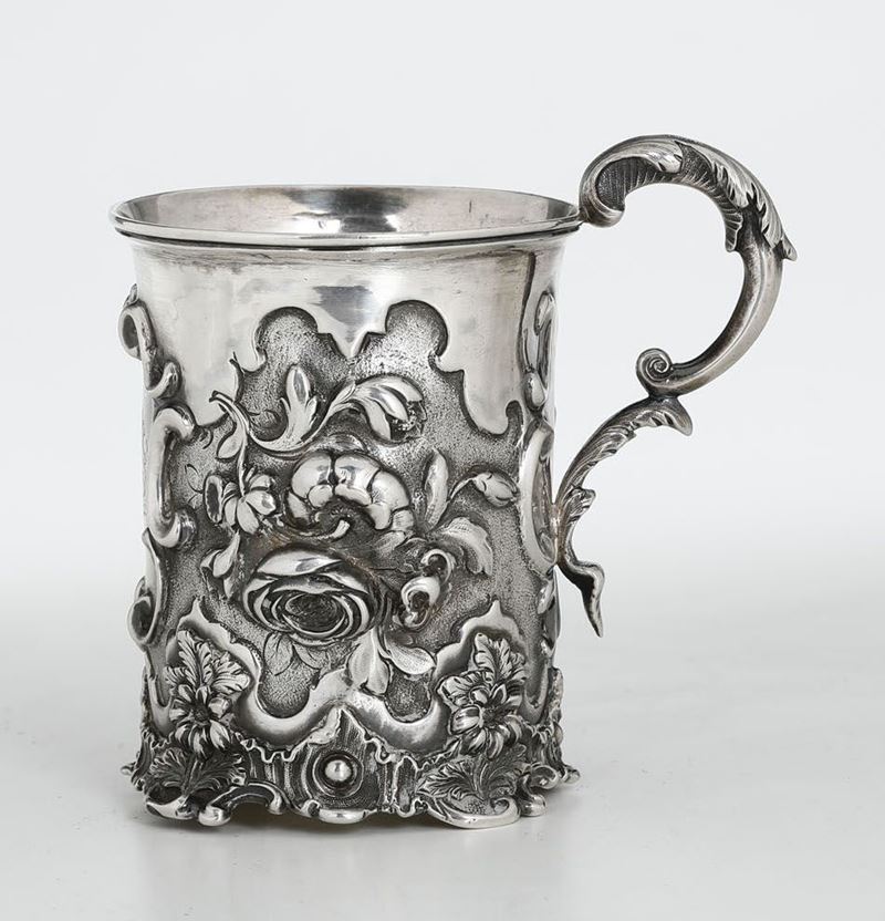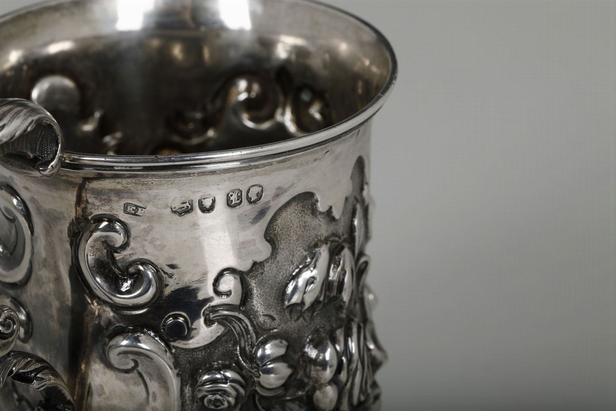 Coppa in argento sbalzato con decoro floreale, Londra XX secolo