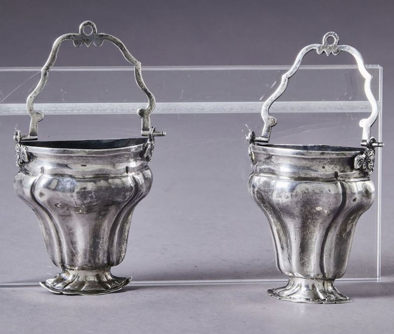 Coppia di acquasantiere in argento. Manifattura del XIX-XX secolo