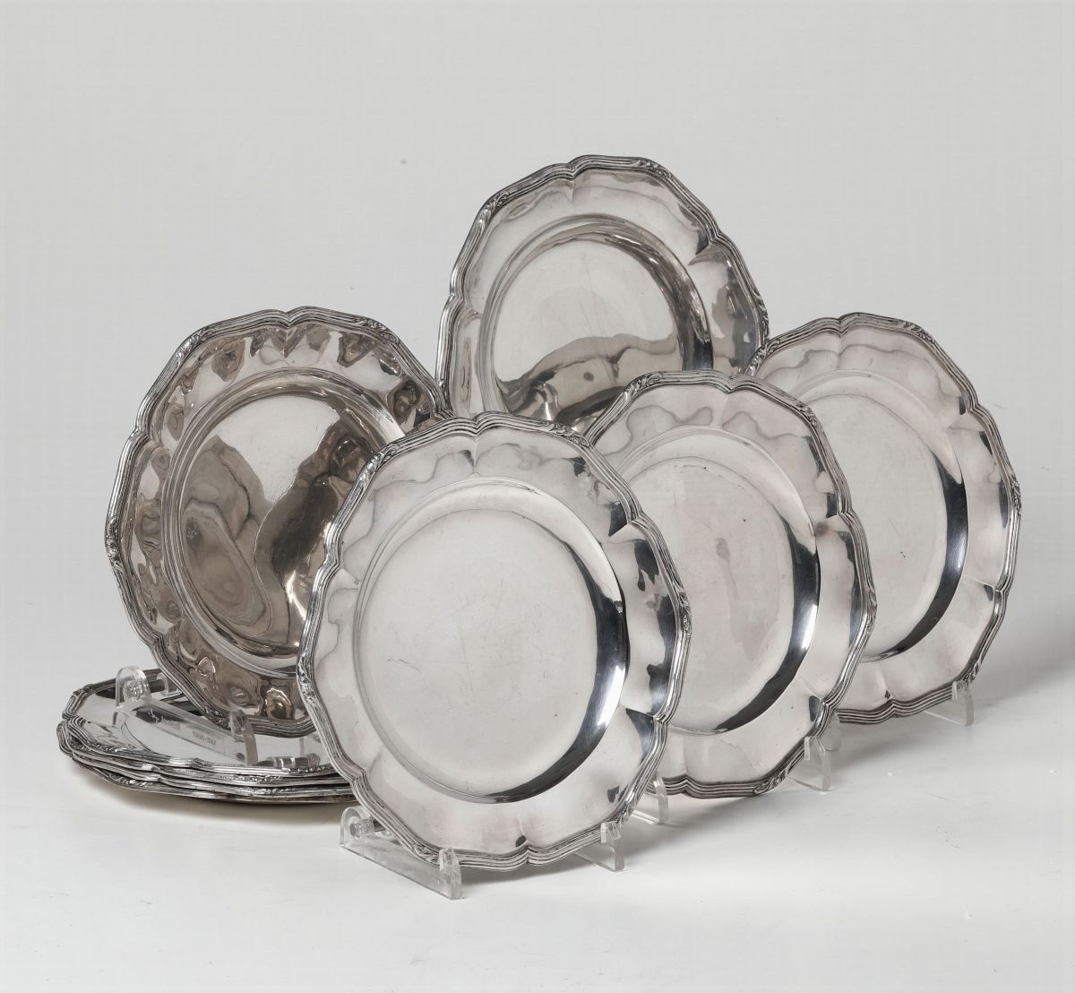 Nove piattini in argento. Manifattura italiana del XX secolo